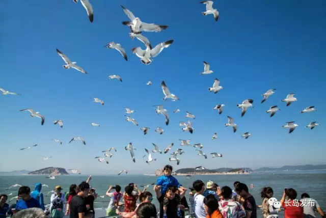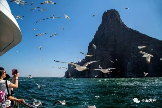 在船上仰望高山岛,岛上成群结队的海鸥站在峭壁上,更多的海鸥轰炸式地从身边掠过,抢食你手中之物,海面捕食的海鸥此起彼伏……这个时节带着家人、孩子来此享受生态的长岛、魅力的大海是任何一位亲身感受过的游人都不会后悔的路线!